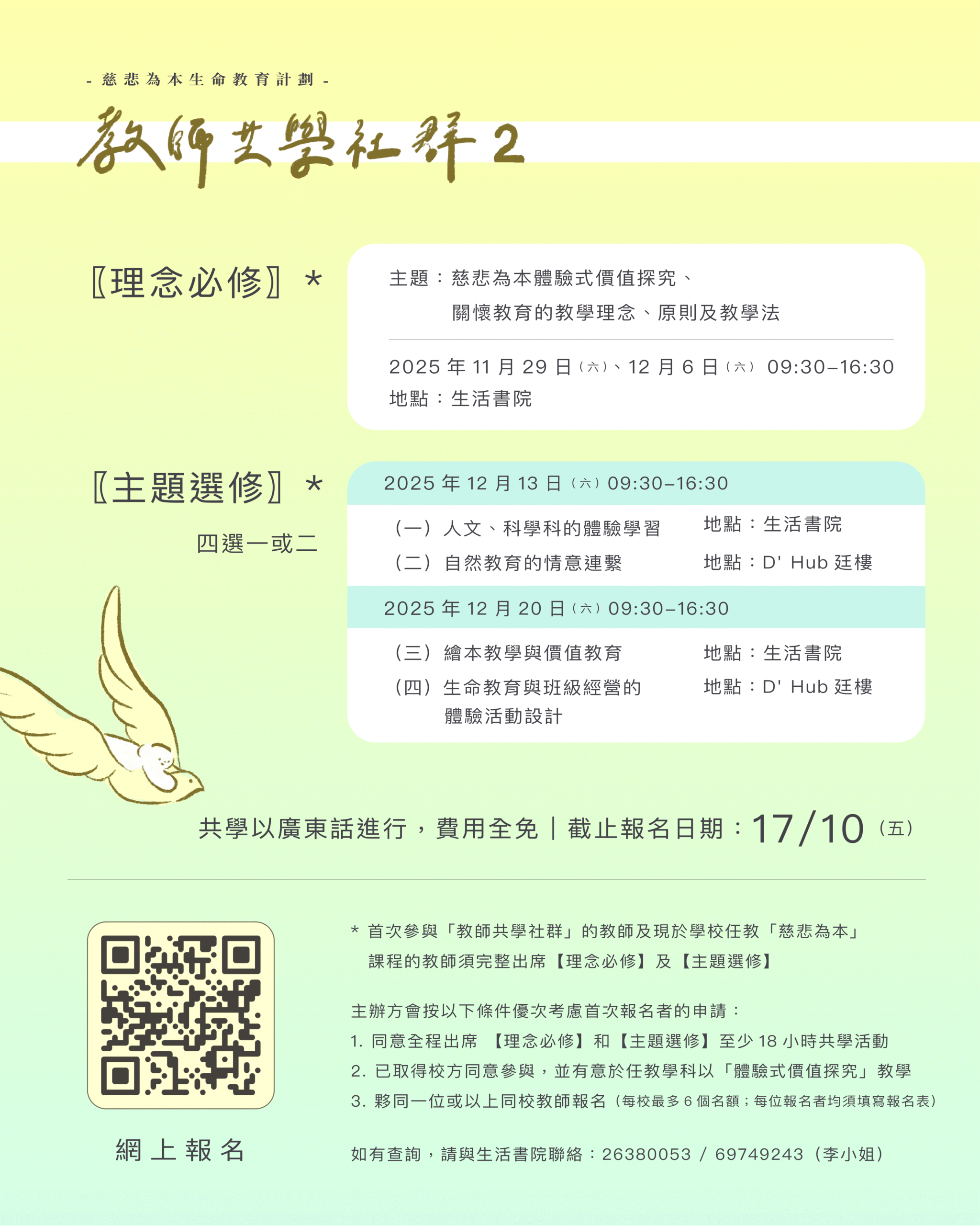 如有任何查詢,請與生活書院聯絡:26380053 / 69749243 (李小姐)